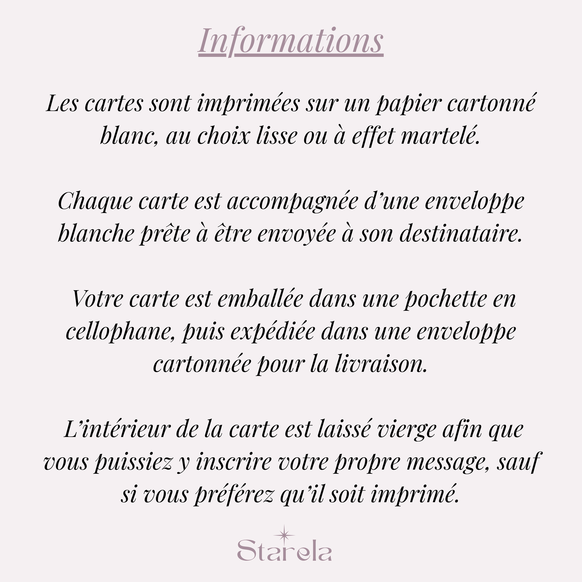 - Accompagnée d'une enveloppe blanche, adaptée au format de la carte